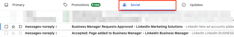 Your client should receive an email from LinkedIn with the Ad Account access request. If they’re using Gmail, these emails will show up in the Social tab so be sure to follow up with them.