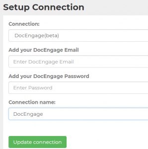 Enter your DocEngage email and password and name your connection DocEngage and hit Update connection.