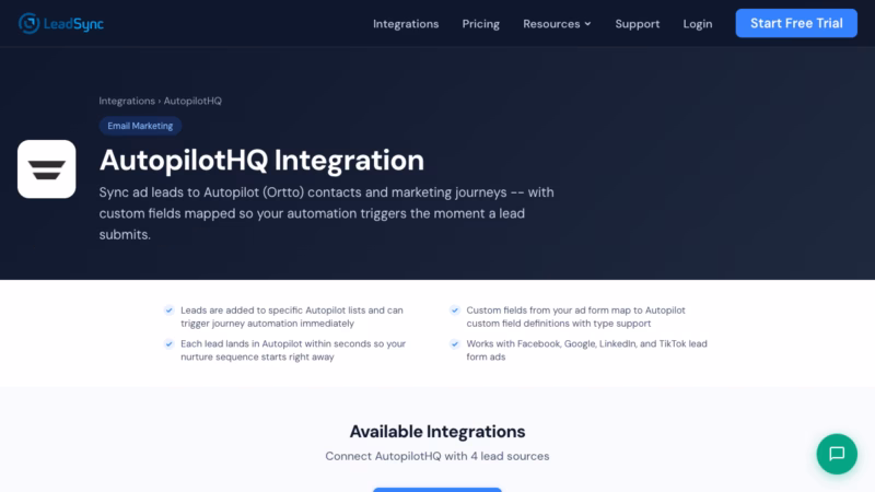 Yes. LeadSync offers a 14-day free trial with full access to all features, including AutopilotHQ syncing. No credit card required to start.