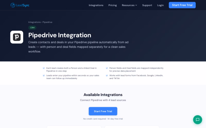 Yes. LeadSync offers a free 14-day trial. No credit card required. You get full access to all features, including unlimited lead syncs during the trial. Test it with your Facebook forms and Pipedrive account before you commit to a plan.