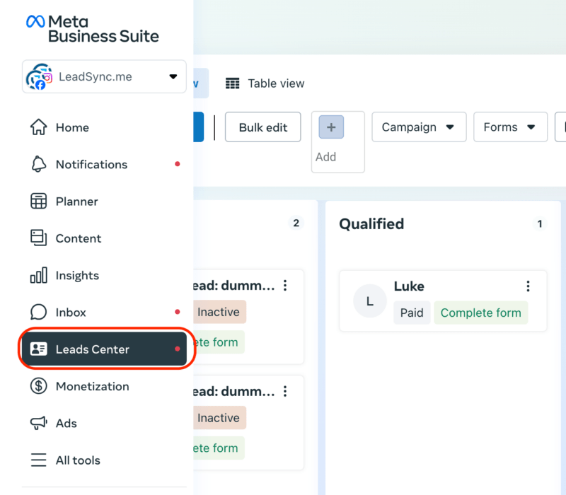 - You will be directed to the Facebook Leads Center dashboard, where you can view and manage all your leads.