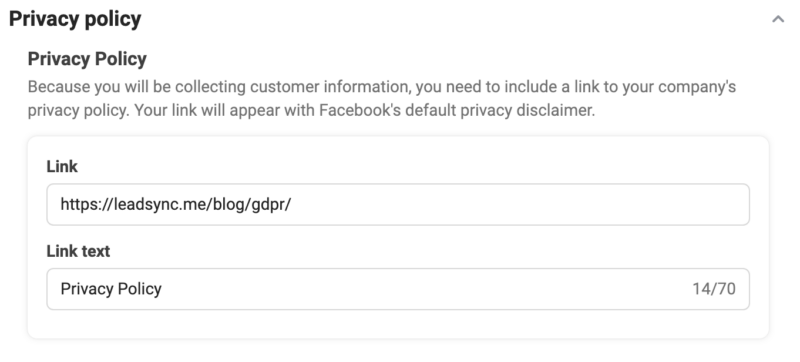 You’ll need to link to a privacy policy, which most websites, if not all, should have. If you don’t, you can use our Privacy Policy Generator.