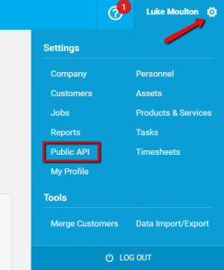 - In the dashboard view, in the upper right corner, click the small gear icon, and from the list select “Public API”