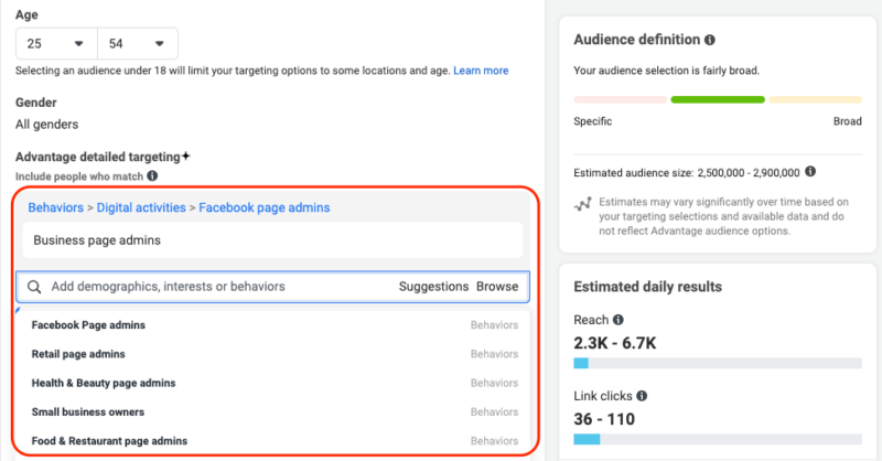 For example, you could combine “Business page admins” with “Frequent international travelers”, to build a targeted high net-worth business owner ad set.