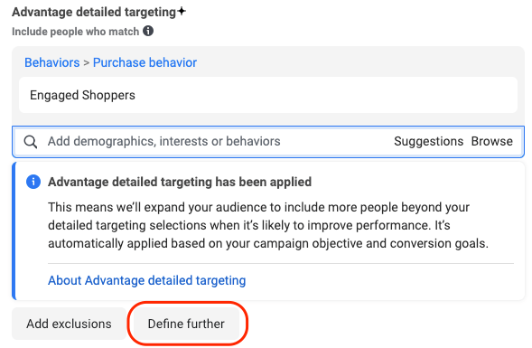 When you’re building your rich audience, be sure to use the Define Further option to combine some of the options listed above.