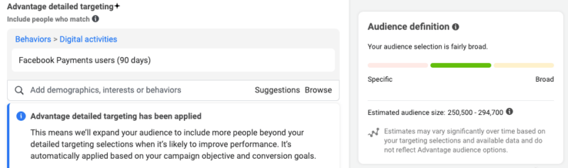 While not available in all countries, the “Facebook Payments” lets you target people who have transacted using, you guessed it, Facebook Payments.