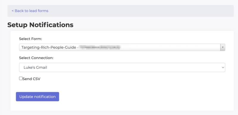 Select your TikTok form and pair it with the email connection you just setup. Click the Update notification button to finish.