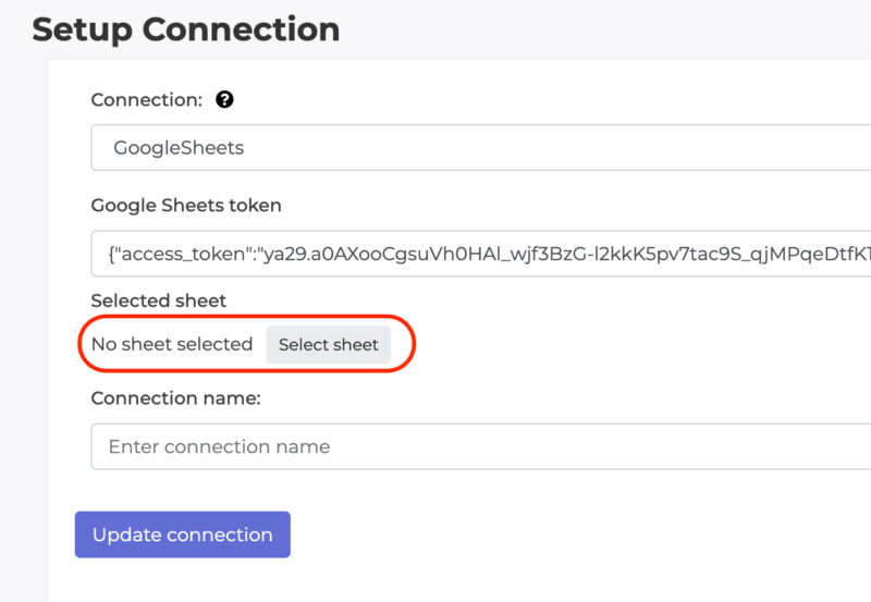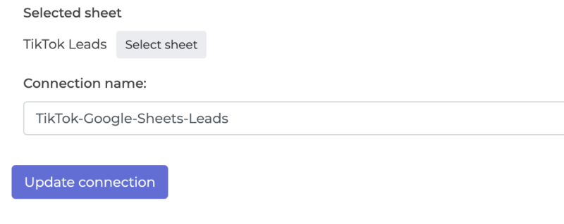 Name Your Google Sheet Connection and click update. It’s always a good idea to make these descriptive so you don’t confuse them with other Google Sheets connections.