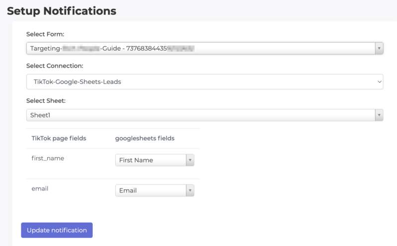 Pairing a TikTok Lead form to a Google Sheet